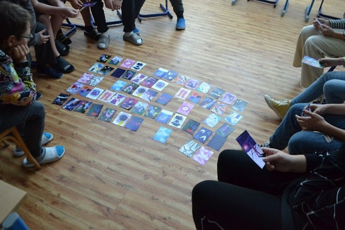 Zamyšlením nad sebou samými ukončíme meditační část, během níž jsme na určité místo ve třídě pro žáky rozložili druhý typ karet (tematické), které otevřou další část hodiny.